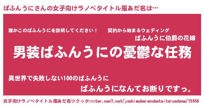 | 胡散臭い通販商品みたいなあだ名 | 『億万長者になれるブレスレット…その名も「ばふんうに」』 |