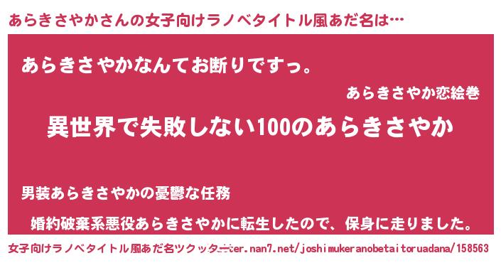 | 胡散臭い通販商品みたいなあだ名 | 『絶対に幸福をもたらす招き猫…その名も「あらきさやか」』 |