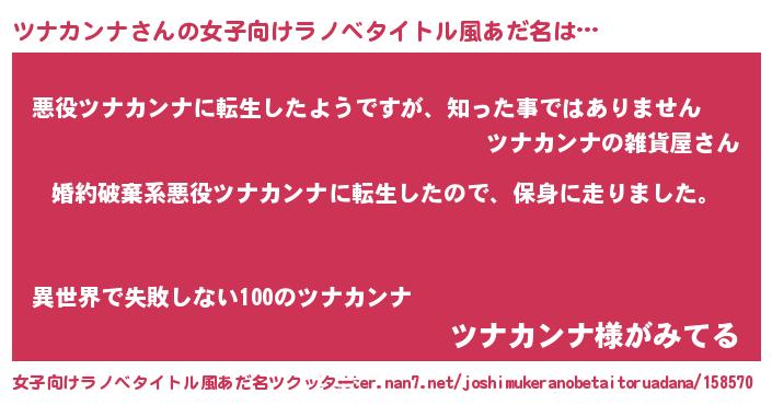 | 意味不明あだ名 | 『めかぶ科ツナカンナ属』 |