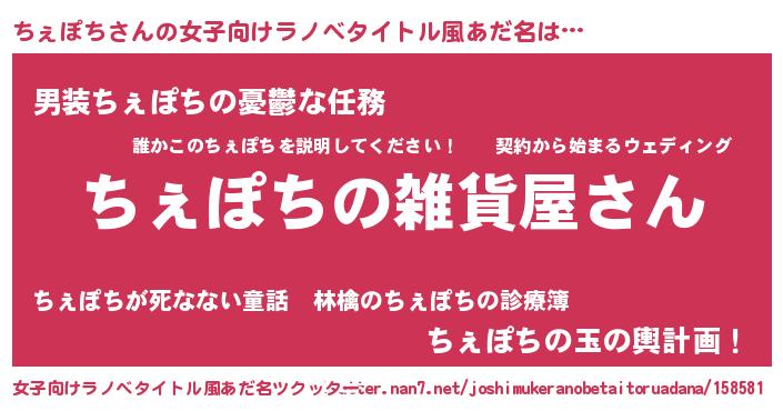 | 胡散臭い通販商品みたいなあだ名 | 『幸せが訪れる高級そうな壺…その名も「ちぇぽち」』 |