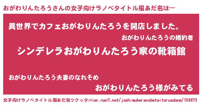 | 意味不明あだ名 | 『永久保存おがわりんたろう』 |