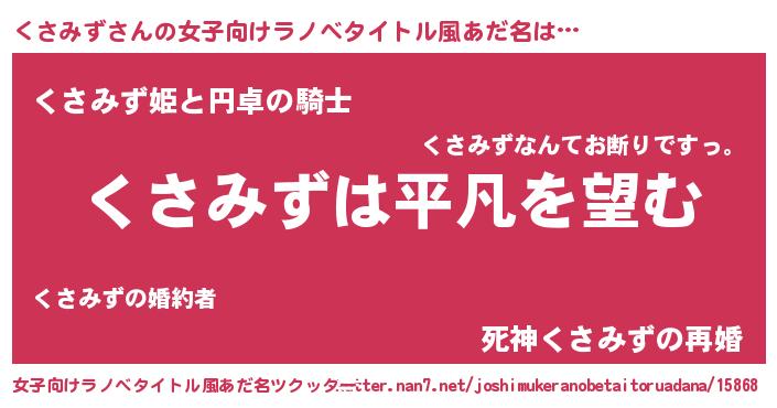 | 胡散臭い通販商品みたいなあだ名 | 『信頼と実績のネックレス…その名も「くさみず」』 |