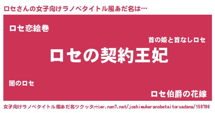 | 胡散臭い通販商品みたいなあだ名 | 『来世でも幸せになれる健康食品…その名も「ロセ」』 |