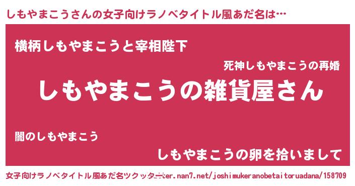 | 男性向けラノベタイトル風あだ名 | 『やはりしもやまこうの青春ラブコメはまちがっている 』 |