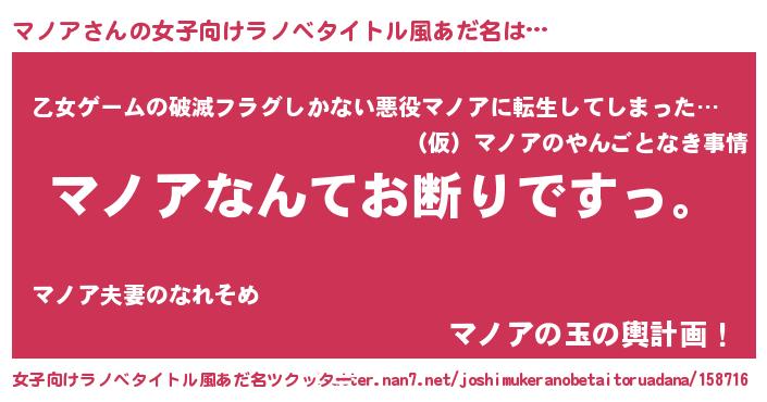| 意味不明あだ名 | 『自称マノア』『住所不定無職マノア(68歳)』 |