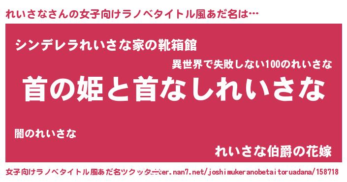 | 意味不明あだ名 | 『れいさなフォーエバー』『自称れいさな』 |