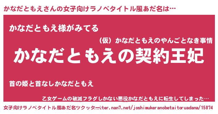 | 男性向けラノベタイトル風あだ名 | 『かなだともえという概念が存在しない退屈な世界 』 |