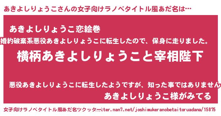 | 男性向けラノベタイトル風あだ名 | 『あきよしりょうこに滅ぼされるだけの簡単なお仕事です』 |