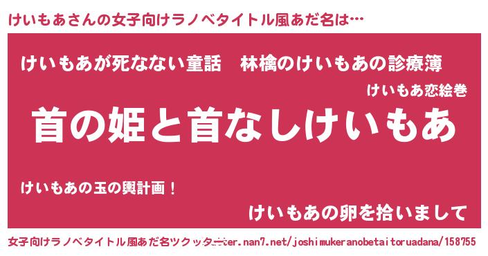 | 意味不明あだ名 | 『住所不定無職けいもあ(13歳)』 |