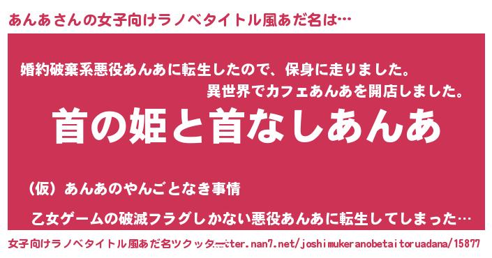 | 意味不明あだ名 | 『なめこ科あんあ属』『永久保存あんあ』 |