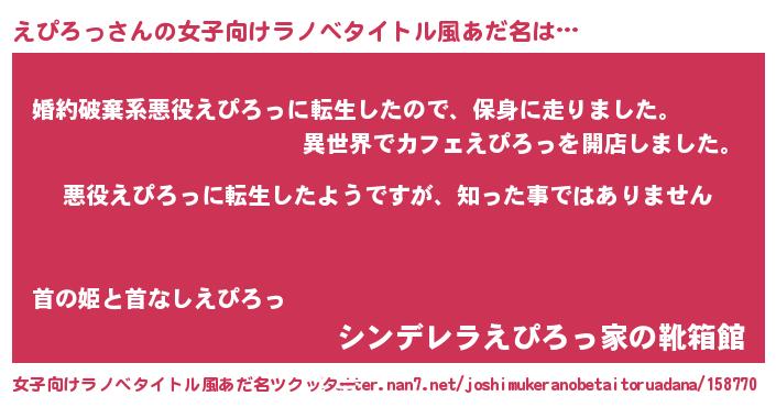 | 男性向けラノベタイトル風あだ名 | 『この素晴らしい世界にえぴろっを!』 |