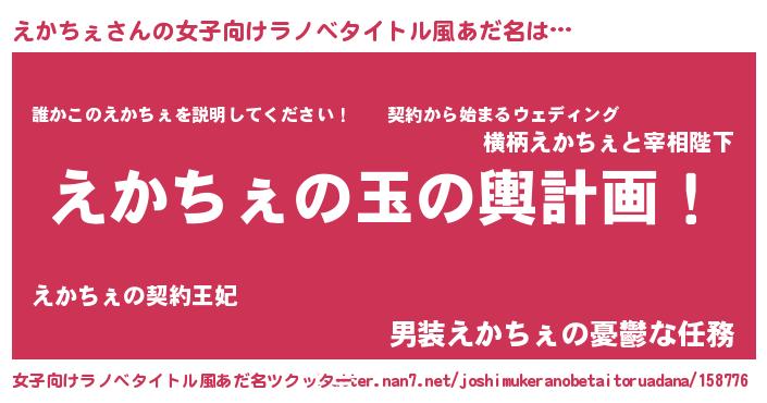 | 男性向けラノベタイトル風あだ名 | 『転生したらえかちぇだった件』 |