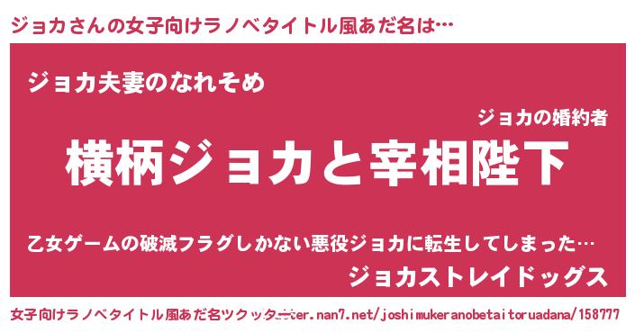 | 男性向けラノベタイトル風あだ名 | 『ジョカに滅ぼされるだけの簡単なお仕事です』 |