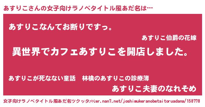 | 男性向けラノベタイトル風あだ名 | 『誰もが恐れるあのあすりこが、ぼくの専属メイドになるようです。』 |