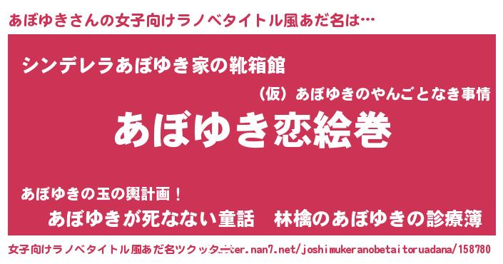 | 男性向けラノベタイトル風あだ名 | 『ノーゲーム・ノーアボユキ』 |