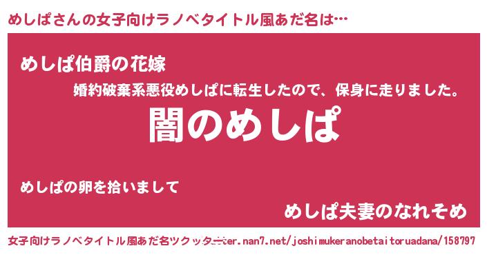 | 意味不明あだ名 | 『自称めしぱ』『めしぱフォーエバー』 |