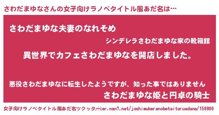 | ヘコむあだ名 | 『さわだまゆな(遠い目)』『さわにゅー』 |