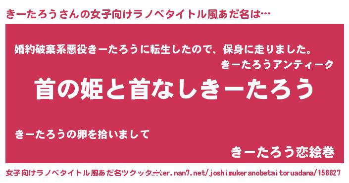 | 男性向けラノベタイトル風あだ名 | 『はたらくきーたろうさま!』 |