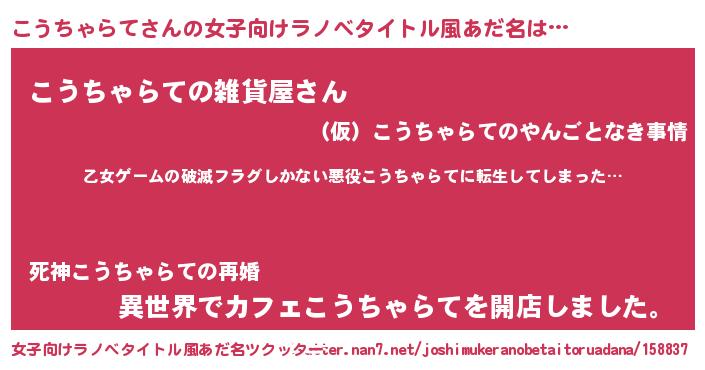 | 意味不明あだ名 | 『住所不定無職こうちゃらて(71歳)』 |