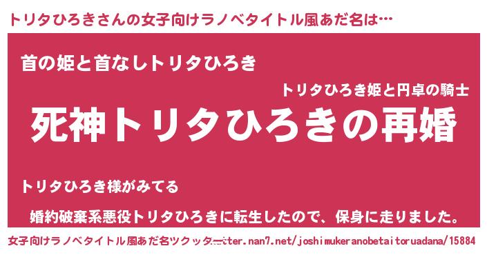 | 肩書あだ名 | 『トリタひろき助教授』 |