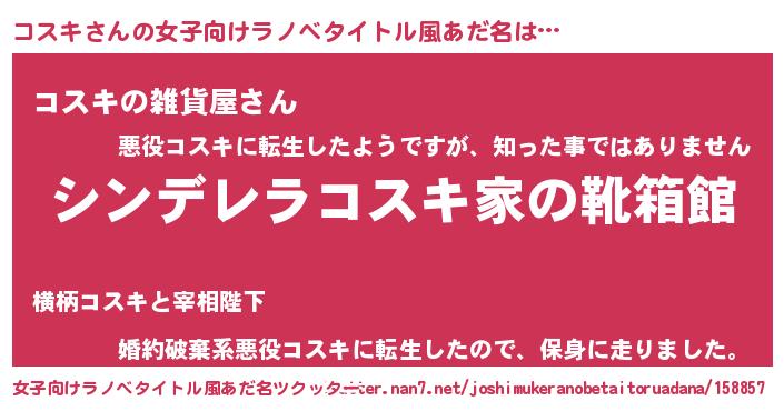 | ヘコむあだ名 | 『つくし』『コスもー』『コス太郎』 |