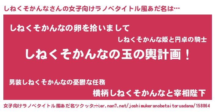| 男性向けラノベタイトル風あだ名 | 『転生したらしねくそかんなだった件』 |