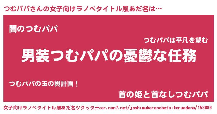 | 意味不明あだ名 | 『自称つむパパ』『めかぶ科つむパパ属』 |