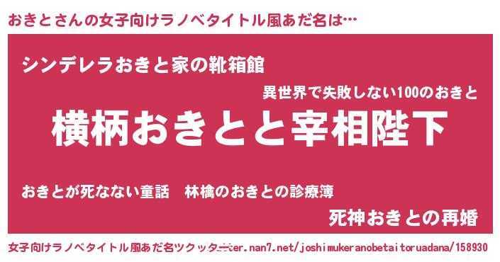 | 男性向けラノベタイトル風あだ名 | 『おきとに滅ぼされるだけの簡単なお仕事です』 |