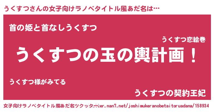 | ヒーロー風カッコイイあだ名 | 『ネオウクスツ』『正義の使者うくすつ』 |