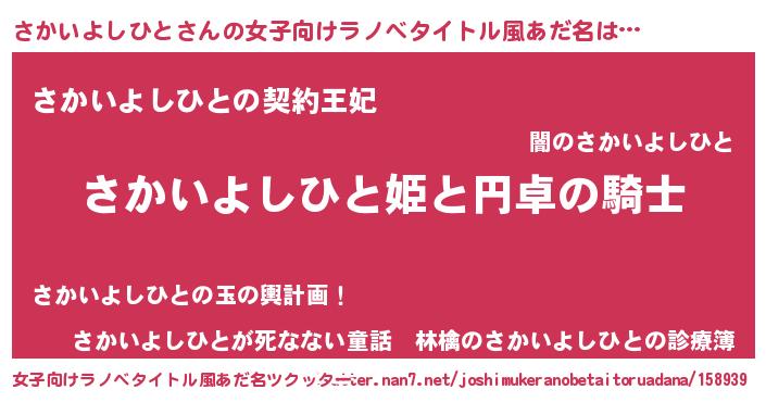 | 胡散臭い通販商品みたいなあだ名 | 『モテモテ間違いなしブレスレット…その名も「さかいよしひと」』 |