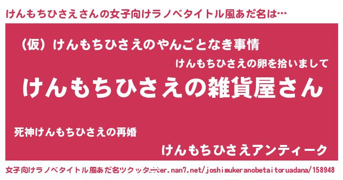 男性向けラノベタイトル風あだ名 | 『やはりけんもちひさえの青春ラブコメはまちがっている 』 |