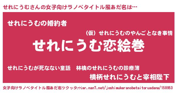 | 男性向けラノベタイトル風あだ名 | 『ノーゲーム・ノーセレニウム』 |