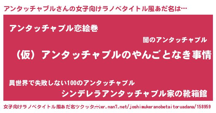 | 胡散臭い通販商品みたいなあだ名 | 『必ず成功するブレスレット…その名も「アンタッチャブル」』 |