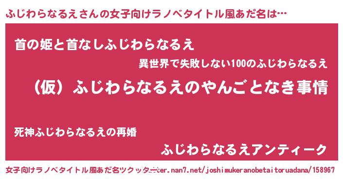| 男性向けラノベタイトル風あだ名 | 『ふじわらなるえの憂鬱』 |