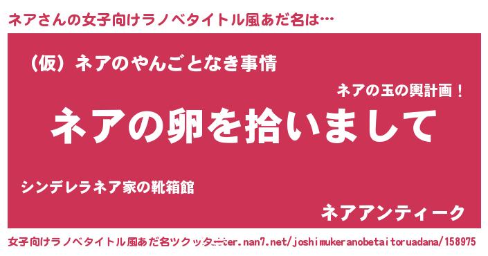 | 胡散臭い通販商品みたいなあだ名 | 『伝統あるサプリメント…その名も「ネア」』 |