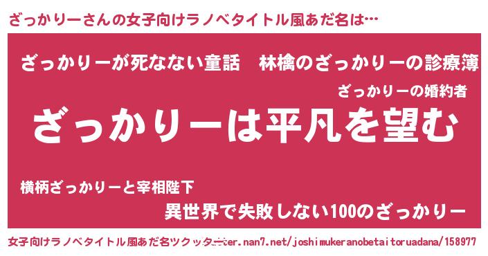 | 男性向けラノベタイトル風あだ名 | 『ダンジョンにざっかりーを求めるのは間違っているだろうか』 |