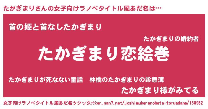 | 男性向けラノベタイトル風あだ名 | 『おまえをオタクにしてやるから、俺をたかぎまりにしてくれ! 』 |