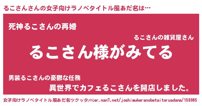 | ヘコむあだ名 | 『るこっちょ』『るこさん(遠い目)』 |
