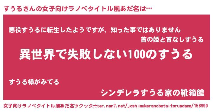 | 男性向けラノベタイトル風あだ名 | 『すうるという概念が存在しない退屈な世界 』 |