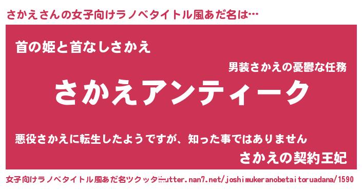 | 意味不明あだ名 | 『自称さかえ』『永久保存さかえ』 |