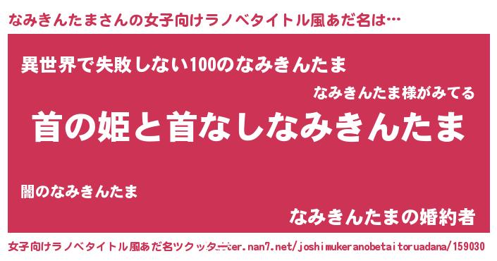 | 男性向けラノベタイトル風あだ名 | 『はたらくなみきんたまさま!』 |
