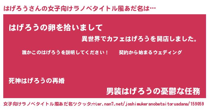 | 男性向けラノベタイトル風あだ名 | 『ハゲロウアートオンライン』 |
