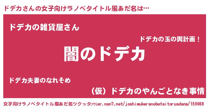 | ファンタジー風あだ名 | 『ゼドデトゥ』『エターナルドデカー』 |