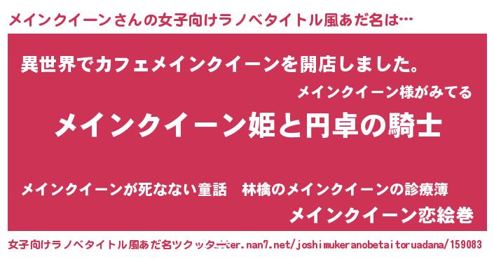 | 男性向けラノベタイトル風あだ名 | 『メインクイーンアートオンライン』 |