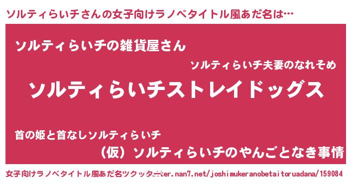 | 男性向けラノベタイトル風あだ名 | 『Re:ソルティらいチから始める異世界生活』 |