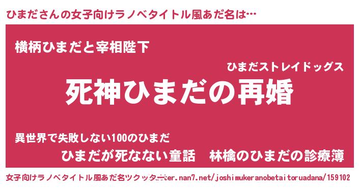 | ヘコむあだ名 | 『ひまだ(笑)』『なまこ酢』 |
