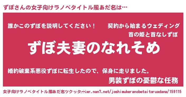 | 男性向けラノベタイトル風あだ名 | 『おまえをオタクにしてやるから、俺をずぼにしてくれ! 』 |