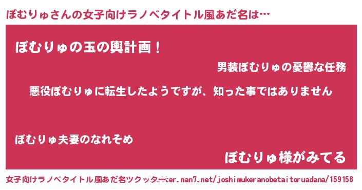 | 男性向けラノベタイトル風あだ名 | 『この素晴らしい世界にぼむりゅを!』 |