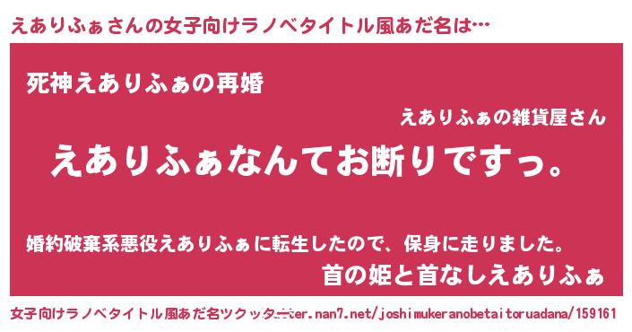 | 男性向けラノベタイトル風あだ名 | 『魔法科高校のえありふぁ』 |