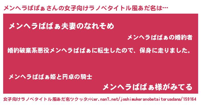 | 男性向けラノベタイトル風あだ名 | 『メンヘラババァスレイヤー』 |